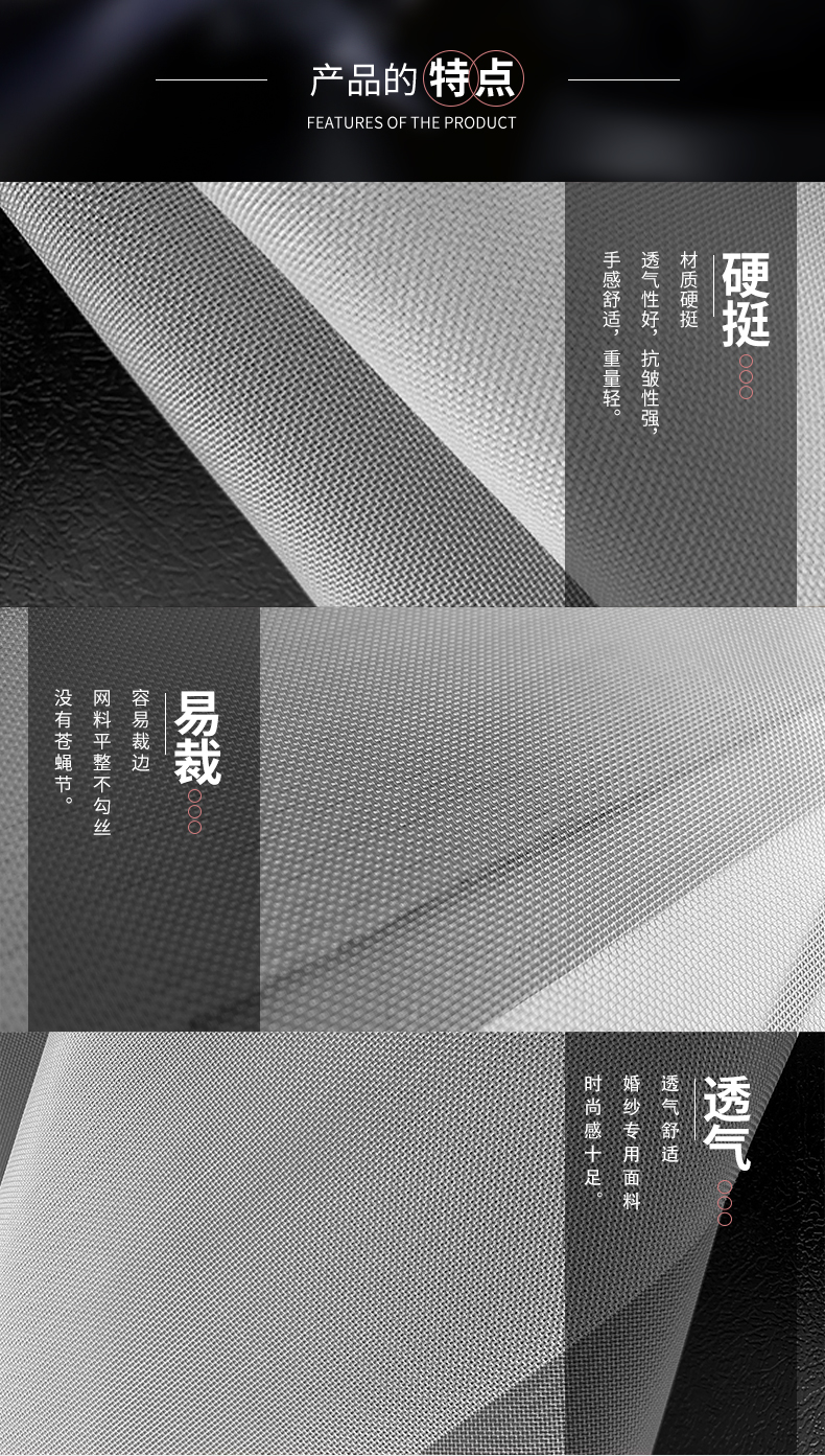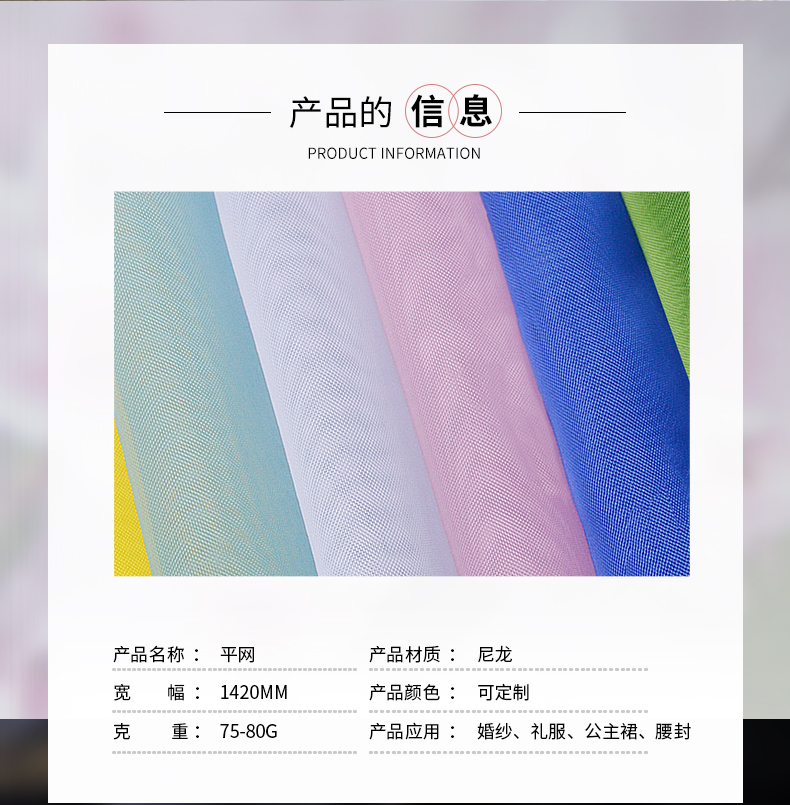 臺州金玨網布,專業從事各種規格材質的網眼布,主要應用在婚紗禮服、箱包、鞋帽、過濾、家居裝飾等行業領域上。可來圖來樣進行定制,免費寄樣,材質硬挺、網孔均勻、目數精準,耐高溫、不縮水不變形等優點,43年網布生產經驗,貨源穩定、獲得新老客戶一致好評 如果你是采購商、貿易商或者加工廠請聯系我們吧!