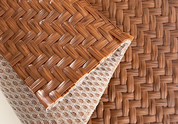 該藤編網(wǎng)是我司自主研發(fā)設(shè)計的一款仿竹藤網(wǎng),材質(zhì)是PE塑料編藤,立體編織,韌性非常好,品質(zhì)好性價比也很高,門幅是1.6米,條厚0.85mm,克重約1200g/㎡,可應用在屏風、柜門、高檔家具、裝飾、酒店、會所裝飾、茶樓、吊頂、貼墻、工藝品飾面、櫥柜、家具靠背、椅墊、隔斷、燈具等,上上好的戶外家具選材!