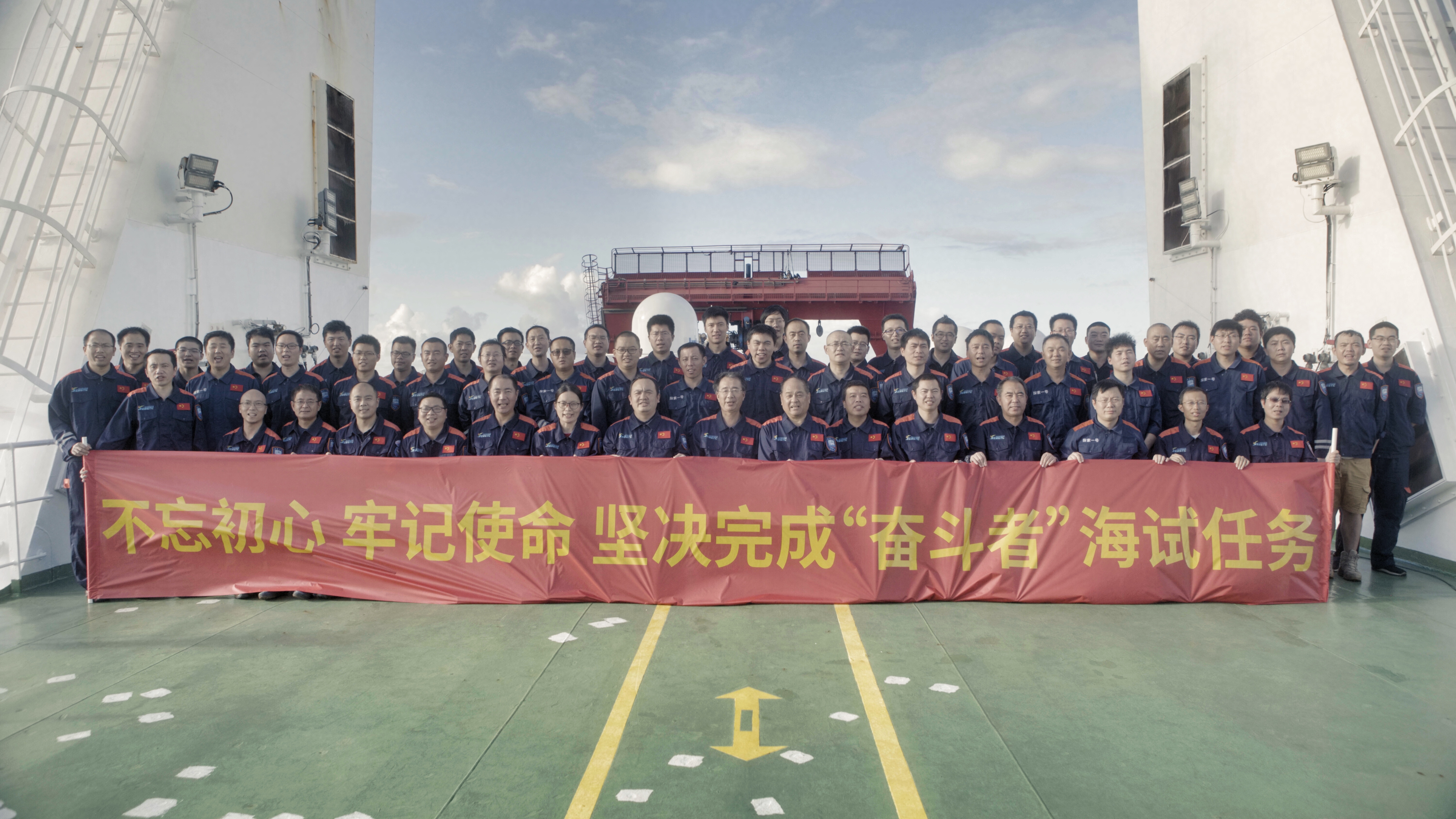 “奮斗者”號研制及海試的成功,標志著我國具有了進入世界海洋最深處開展科學探索和研究的能力,體現了我國在海洋高技術領域的綜合實力。從“蛟龍”號、“深海勇士”號到今天的“奮斗者”號,你們以嚴謹科學的態度和自立自強的勇氣,踐行“嚴謹求實、團結協作、拼搏奉獻、勇攀高峰”的中國載人深潛精神,為科技創新樹立了典范。希望你們繼續弘揚科學精神,勇攀深海科技高峰,為加快建設海洋強國、為實現中華民族偉大復興的中國夢而努力奮斗,為人類認識、保護、開發海洋不斷作出新的更大貢獻!