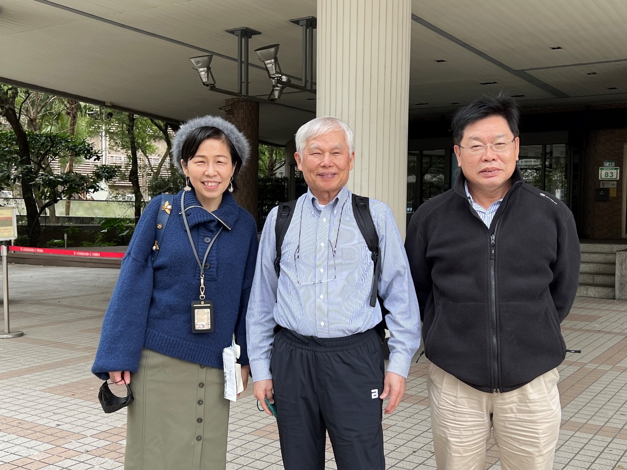 明研究員與劉雅瑄系主任(左)、前副校長羅清華(右)合影留念