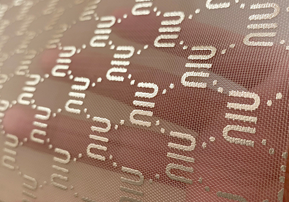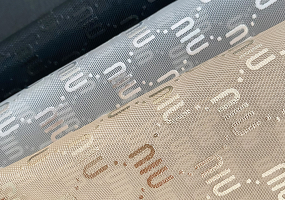 此款網眼布是燙金工藝,燙金網布是以滌綸、錦綸等化學纖維為原材料再經過燙金工藝(將布料放在燙金機上進行高溫等方式處理)處理后制成,一般布面上會帶有花紋和圖案的這類網眼布統稱為燙金網眼布。