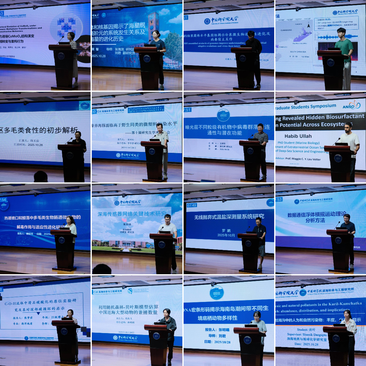 2025年10月28日下午,中國科學院深海科學與工程研究所第十屆研究生學術報告會在綜合樓1003學術報告廳舉行。來自不同年級、專業的14名博士研究生、4名碩士研究生,圍繞各自的科研方向進行了學術交流與成果展示。會議邀請了8名評委對各位研究生的報告進行點評。
