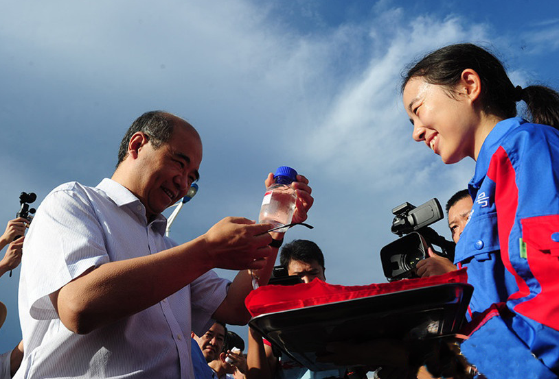 8月12日上午8點(diǎn),中國(guó)4500米載人潛水器及萬米深潛作業(yè)的工作母船“探索一號(hào)”科考船首航歸來。中國(guó)科學(xué)院相里斌副院長(zhǎng)、海南省人民政府王路副省長(zhǎng),科技部、國(guó)家海洋局、中國(guó)船舶重工集團(tuán)、中國(guó)五礦集團(tuán)等有關(guān)部門和單位領(lǐng)導(dǎo)和同志、科考隊(duì)員家屬代表在三亞碼頭迎接科考隊(duì)返航。中國(guó)科學(xué)院白春禮院長(zhǎng)向科考隊(duì)致賀信,海南省人民政府王路副省長(zhǎng)發(fā)表講話。簡(jiǎn)樸而隆重的歡迎儀式后,科考隊(duì)向迎接的領(lǐng)導(dǎo)和代表匯報(bào)了本次深淵科考工作開展情況。