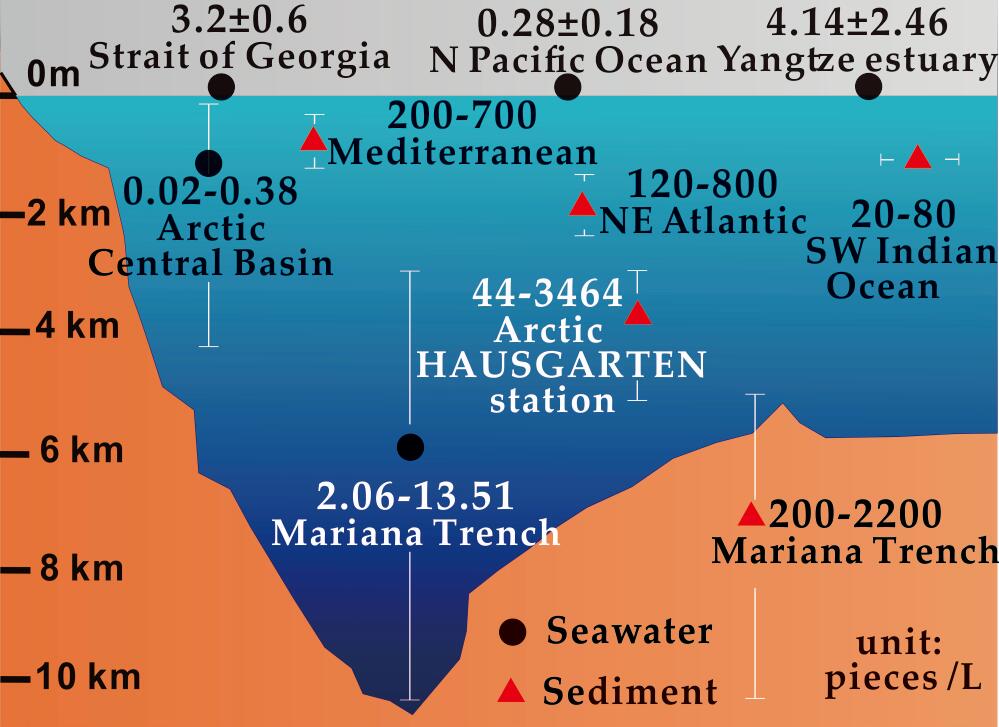 馬里亞納海溝挑戰(zhàn)者深淵與世界其它海域微塑料含量對比
