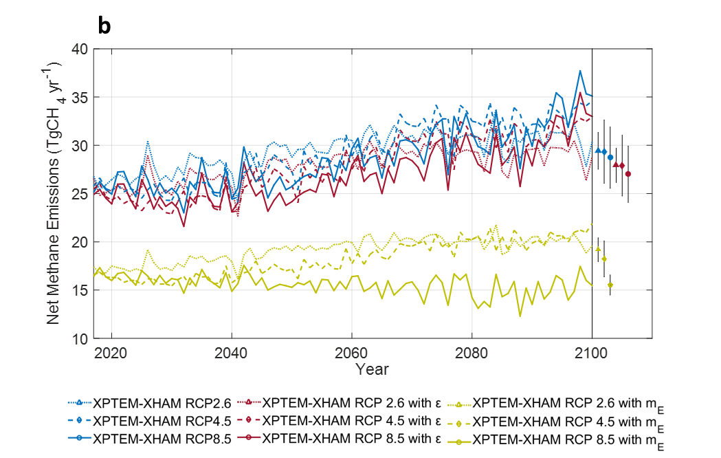 研究人員將最近在北極礦物土壤中發(fā)現(xiàn)的高親和力甲烷氧化菌(HAMs;甲烷氧化細(xì)菌)和產(chǎn)甲烷菌的動力學(xué)整合到包含永凍層土壤有機碳動力學(xué)的生物地球化學(xué)模型中。新模型預(yù)測,由于永凍層中的有機碳在較暖和的氣候下會更容易被微生物降解,在2017年至2100年之間濕地甲烷排放量將增加一倍。但是,高地凍土由HAMs主導(dǎo)的甲烷匯強度同時也在增加,因而抵消了大部分濕地甲烷的排放,令北極地區(qū)甲烷凈排放量僅增加18%。預(yù)計由于HAMs和產(chǎn)甲烷菌對溫度上升所作出的生理反應(yīng)有異,北極地區(qū)甲烷凈排放量可能會進(jìn)一步降低。