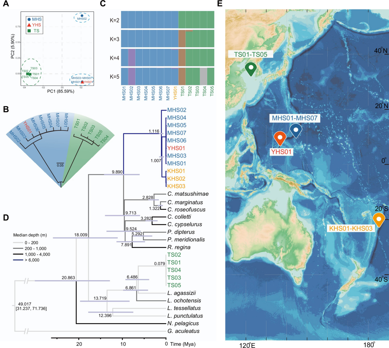 深淵獅子魚的采樣信息、系統發育關系和種群結構