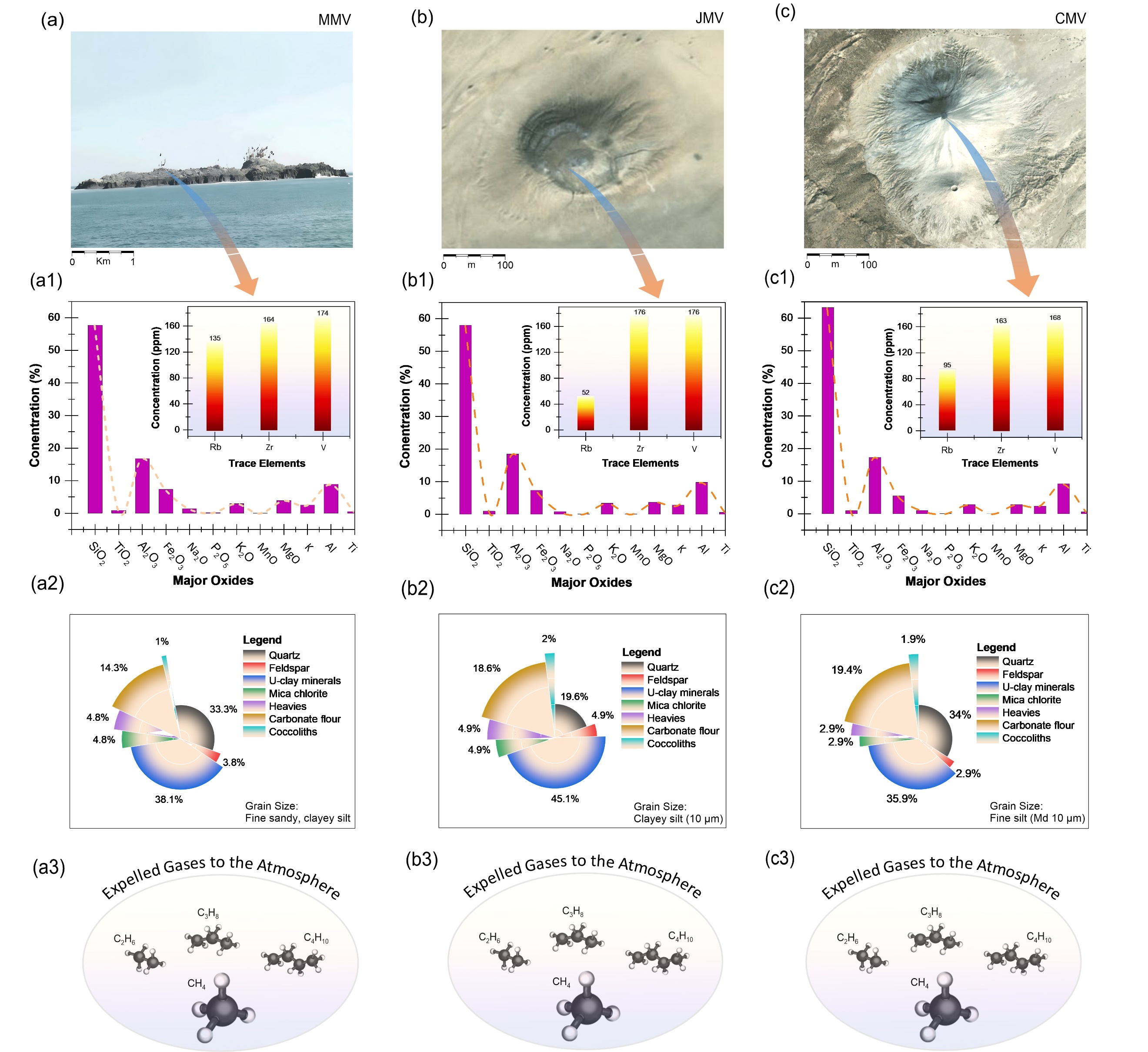 圖5.?Makran Subduction Zone 中三座泥火山噴出的泥角礫巖及氣體的地球化學(xué)分析