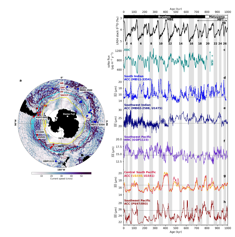 Wu, S et al. Zonally asymmetric changes in the Antarctic Circumpolar Current strength over the past million years. Nature Geoscience (2026). https://www.nature.com/articles/s41561-025-01901-2.